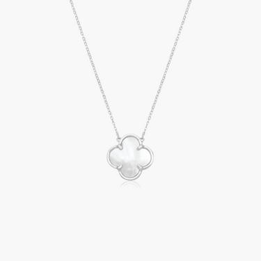 Discover a symbol of timeless beauty and celestial charm with the Elysian Clover Pendant - a masterpiece of elegance and sophistication. Expertly crafted from 925 sterling silver, this pendant features a stunning mother-of-pearl clover that glows with natural, iridescent hues. Inspired by the ethereal beauty of the Elysian Fields, this piece exudes grace and good fortune, making it the perfect addition to any jewelry collection.