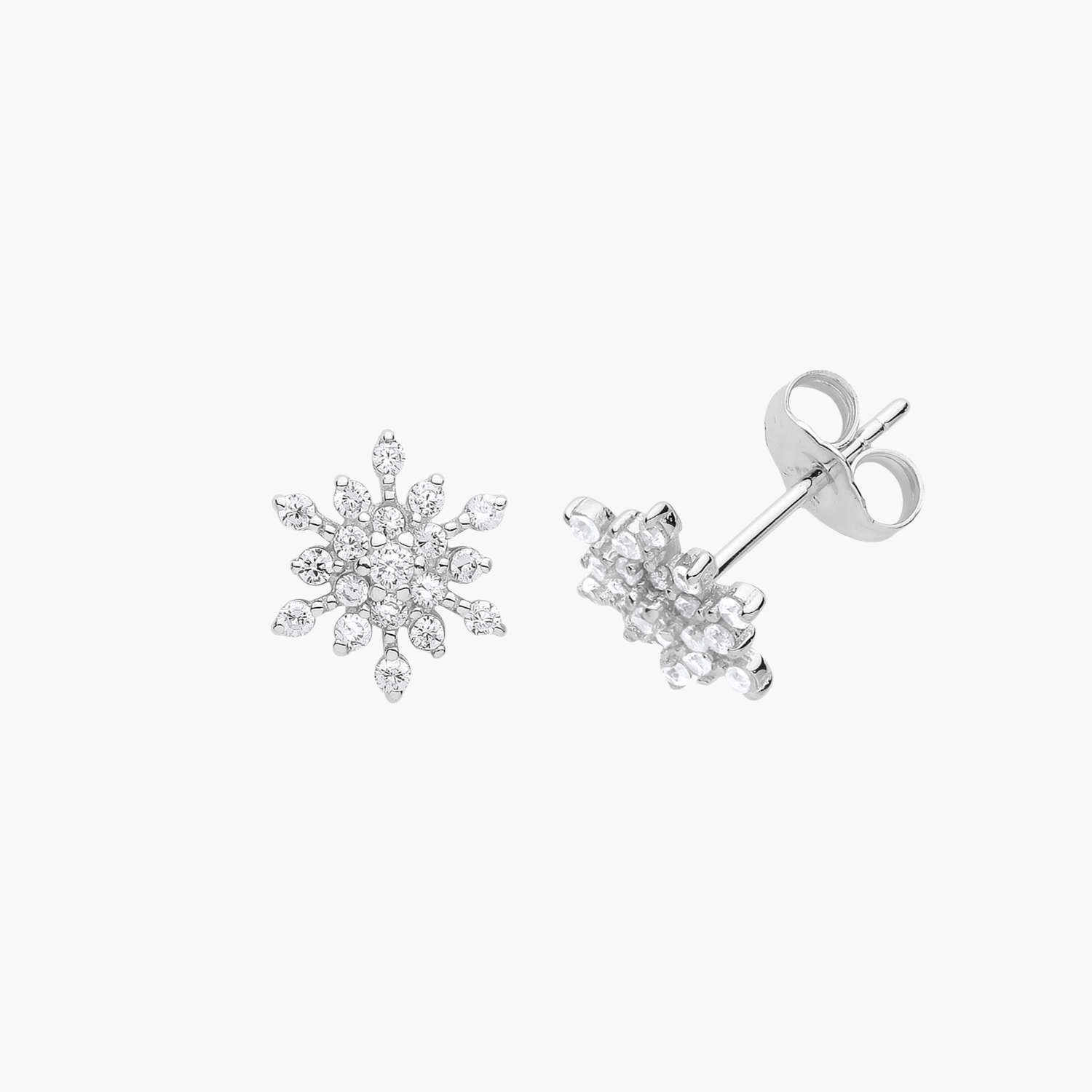 Elegant, sparkly and perfect for the winter season — these Sterling Silver Snowflake Stud Earrings feature a beautifully detailed snowflake silhouette, micro-set with brilliant cubic zirconia stones for a frosted, shimmering finish.