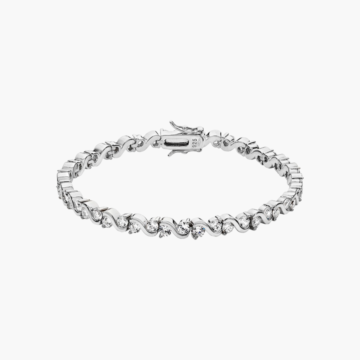 Elegant, sparkly and beautifully detailed — this sterling silver twisted CZ bracelet features an interlocking twist design set with round brilliant CZ stones for a graceful shimmering look.
