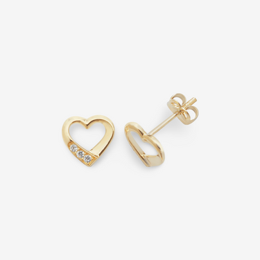 Infuse a touch of edgy elegance into your style with our Sparkle Heart Stud Earrings. Crafted in 9ct yellow gold and embellished with CZ stones, these studs bring a subtle sparkle and a modern vibe to your look. Perfect for everyday wear, these earrings effortlessly combine chic simplicity with a hint of glamour.