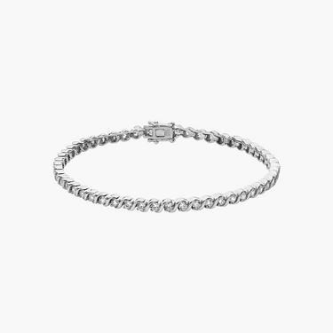 A refined and elegant take on a classic. This sterling silver twist-set CZ tennis bracelet features round brilliant stones held in a flowing twist-style setting, creating subtle movement and sparkle with every turn of the wrist.