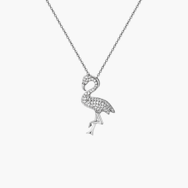 Add a touch of tropical charm to your jewellery collection with this elegant Sterling Silver Flamingo Necklace. Beautifully crafted in polished 925 silver, the pendant sparkles with pave-set cubic zirconia stones, creating a dazzling finish that catches the light from every angle.