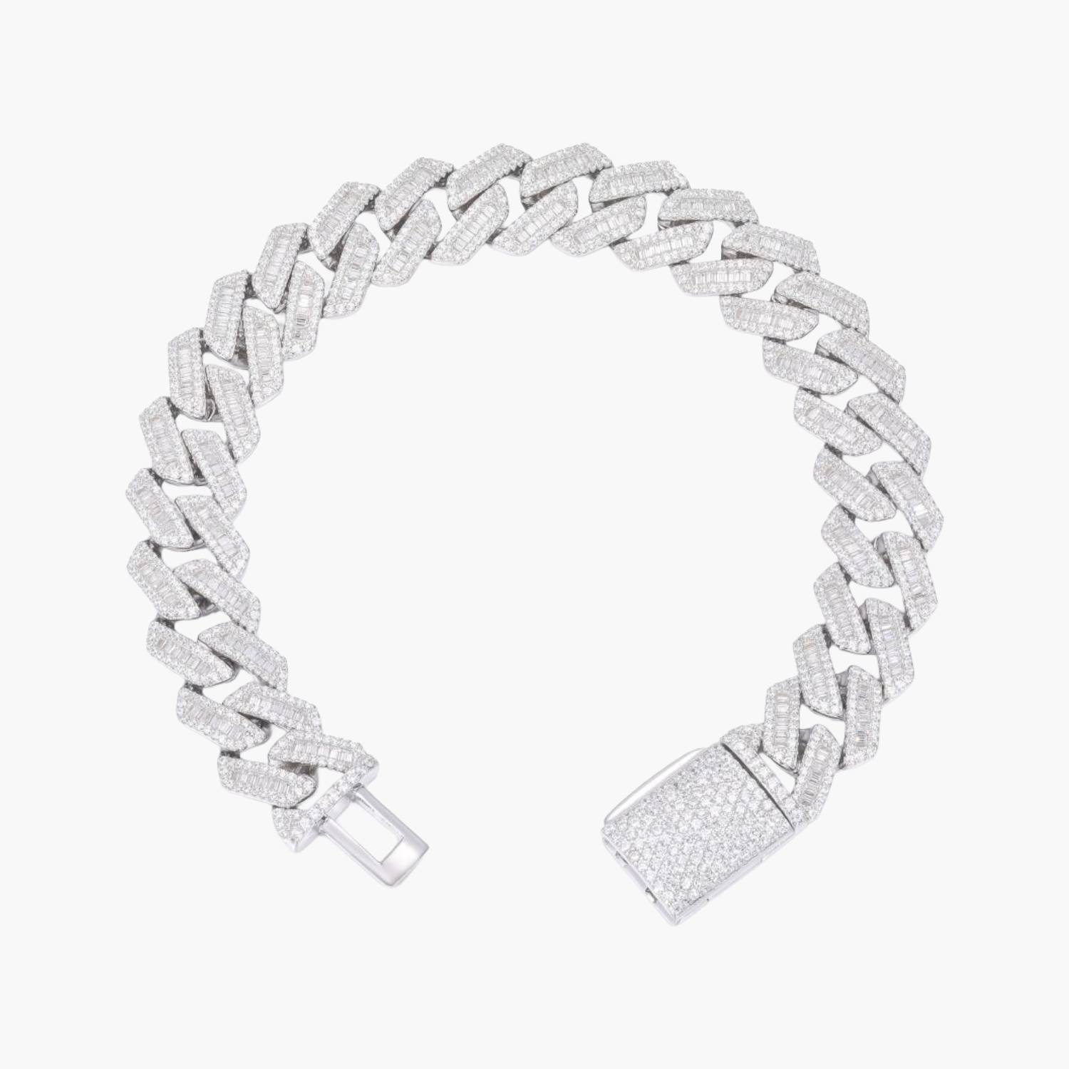 Turn up the shine with this 12mm 925 Sterling Silver Baguette CZ Cuban Bracelet — a bold, high-end piece designed for maximum impact. Every link is meticulously handset with a mix of baguette-cut and pavé-set cubic zirconia stones, creating a luxury iced-out finish that hits from every angle.